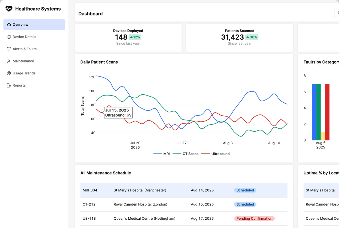 Designed for healthcare and operations leaders seeking clarity and control. By integrating, resource allocation, and real-time performance metrics, we create intelligent dashboards that improve efficiency, reduce bottlenecks, and support better outcomes for patients and teams alike.